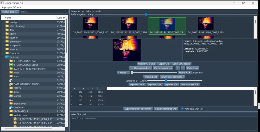 Développement de logiciels en python pour drone Les logiciels Drone software launcher_v1.exe Drone géo v1.exe Drone thermo v1.exe Drone trace v1.exe n'étant pas encore répertoriés dans les bases de données logicielles de Microsoft, ils génèrent au 1er lancement, une alerte Microsoft Défender car ils n'ont pas encore de "signature officielle". No Stress, validez et passez outre l'alerte, je les certifie "Clean's". Je les développé au départ pour mon usage perso... https://kdrive.infomaniak.com/app/share/1421062/13d2ef9d-6ce1-4372-9f08-6967d03ec222 |